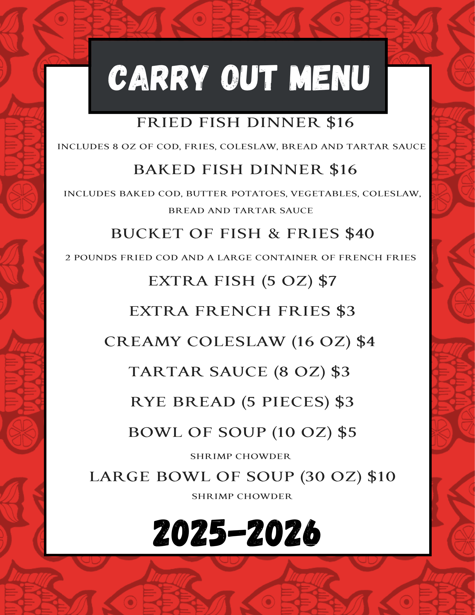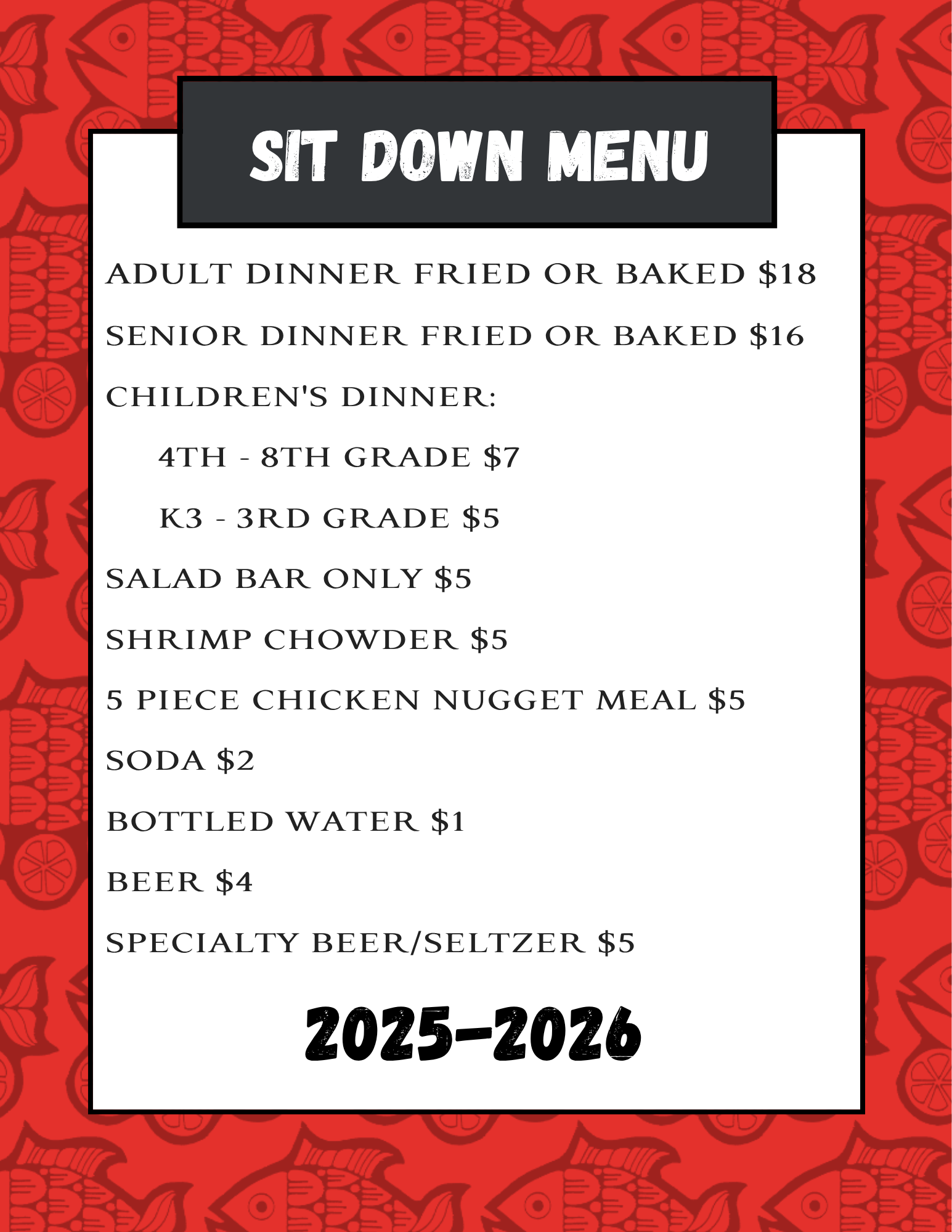Fish Friday Hours: 4:30-7:30 p.m.